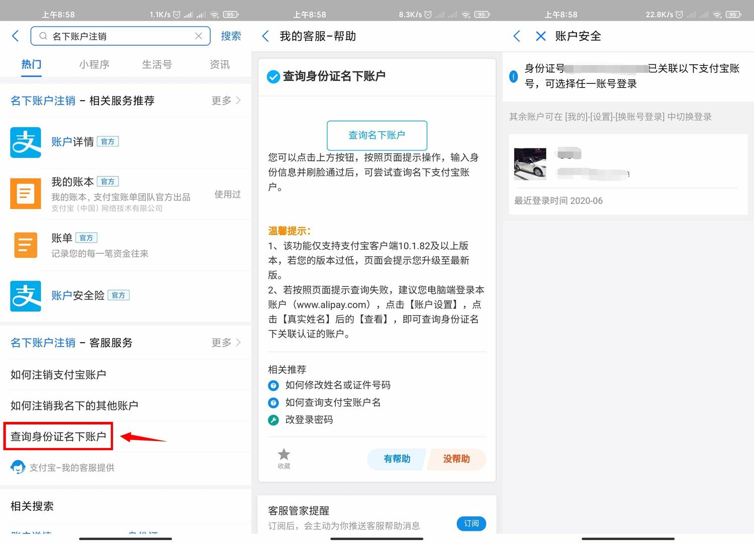 打开支付宝首页搜索“名下账户注销”点击查询身份证名下账户,可以把不要的账号都注销掉,以防被不法分子利用。